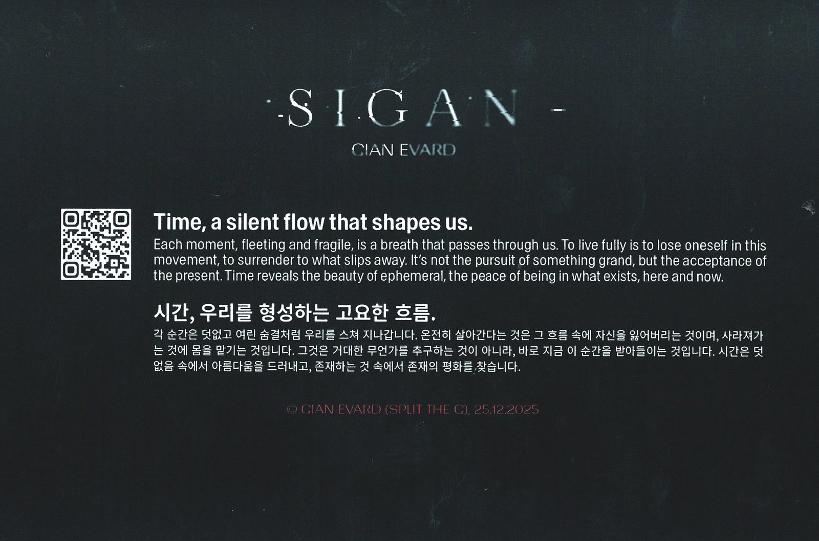 Sigan est un projet audio-visuel qui met en exergue la philosophie coréenne et leur vision ancestrale du temps. De part les leçons de vie apprises lors de mon passage au pays du matin calme, je tente ici de délivrer une version poétique de la vie, de ses travers, de sa cruauté mais surtout de sa beauté. Saisissez l’instant présent.