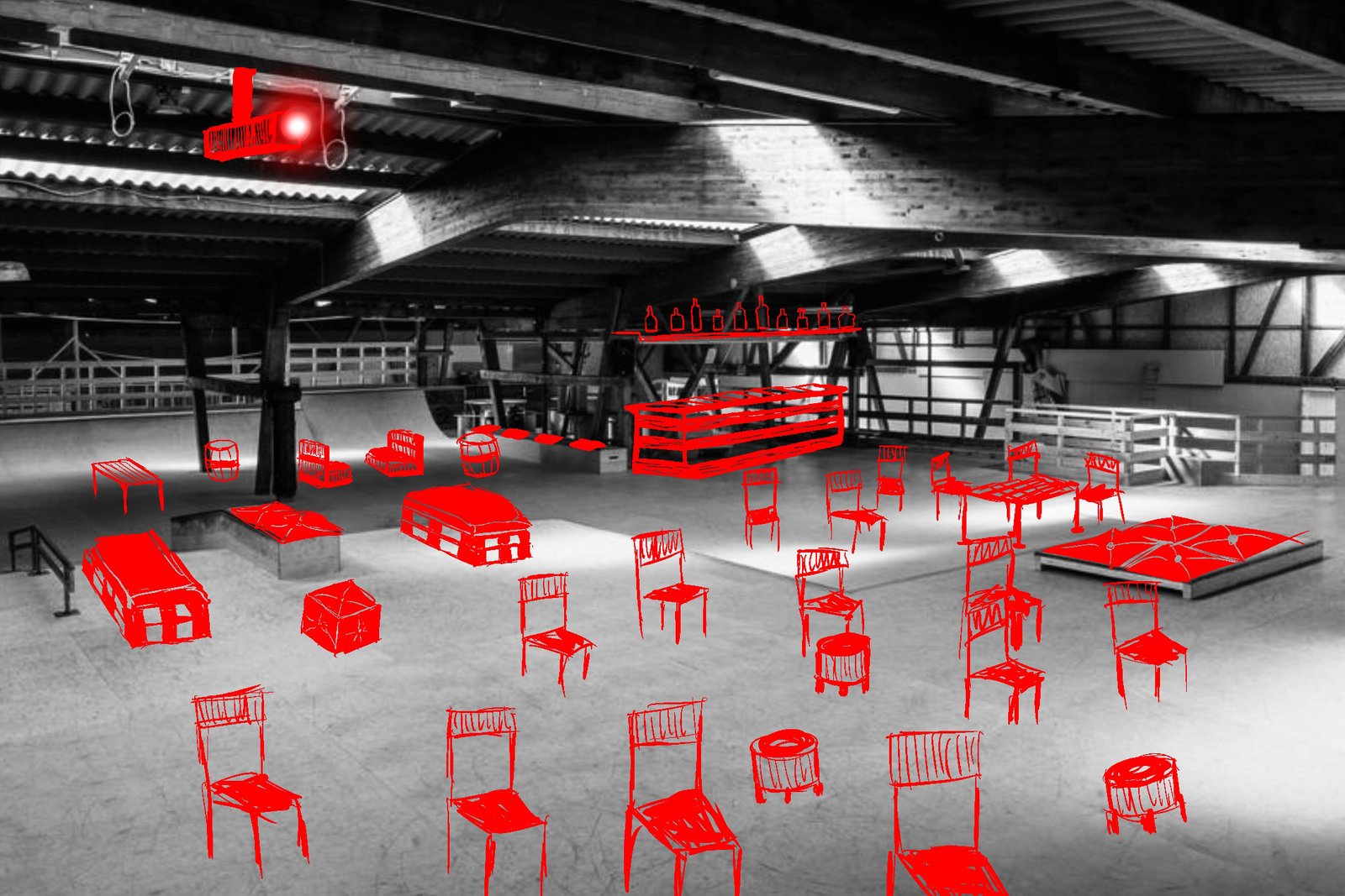 Le dessin des lettres reprend les codes graphiques de la scène techno berlinoise et des bâtiments typiques des vikings.